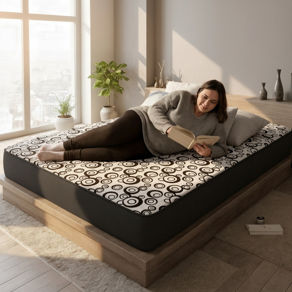 Su base de alta densidad mantiene el colchón firme y estable, mientras la capa intermedia se adapta a tu cuerpo para distribuir el peso de forma uniforme.